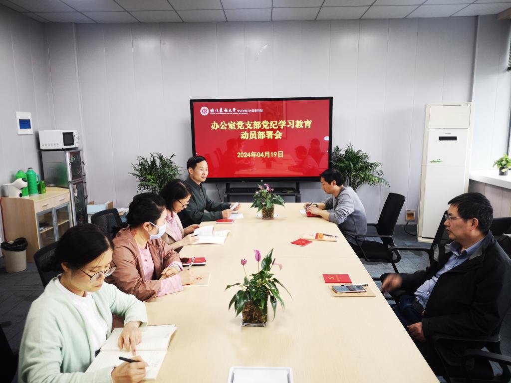 4月19日中午,办公室党支部在实验楼610会议室,召开党纪学习教育动员部署会。支部全体党员参加会议,会议由支部书记叶斌主持。