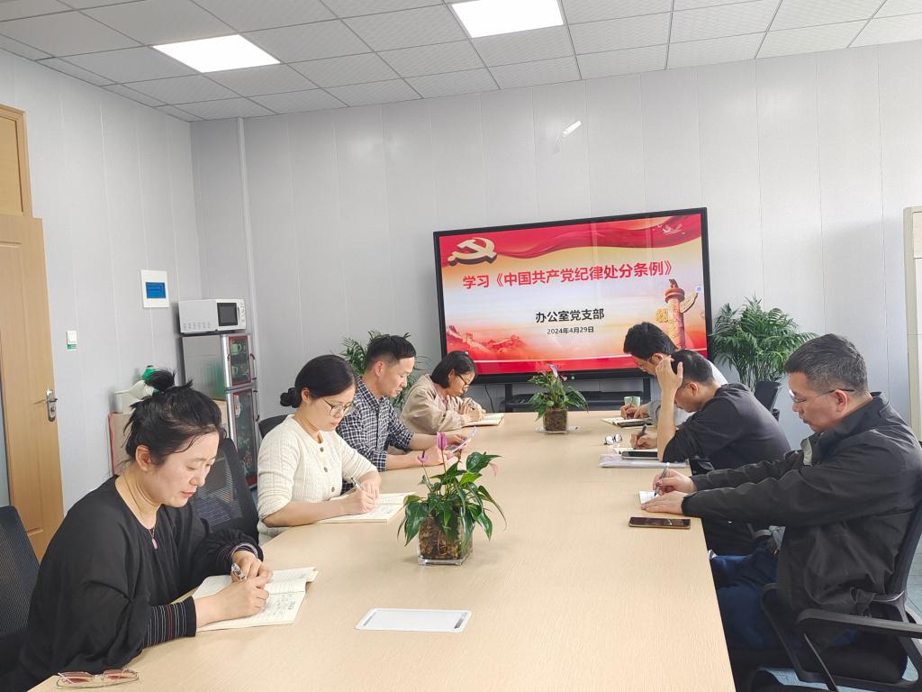 4月29日下午,办公室党支部召开专题会议,集体学习新修订的《中国共产党纪律处分条例》(以下简称《条例》)。会议由办公室党支部书记、院办公室主任叶斌主持,院办全体党员参加了学习。