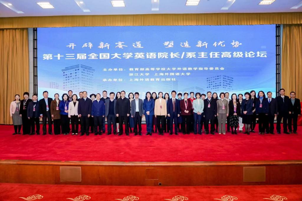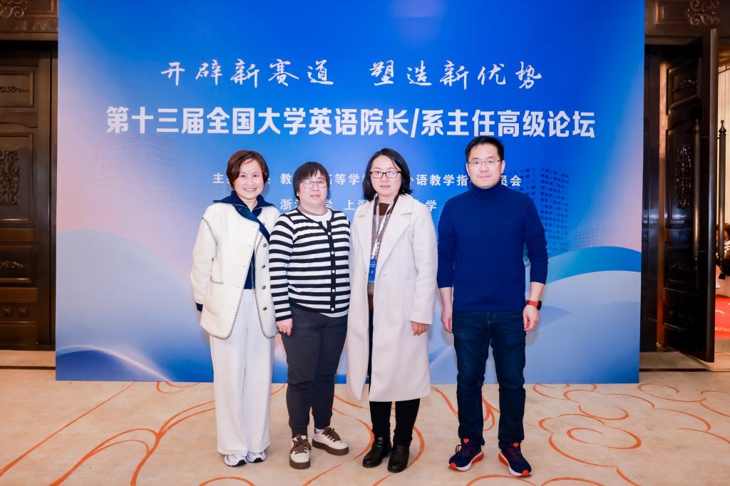 3月15日,由教育部高等学校大学外语教学指导委员会、浙江大学和上海外国语大学共同主办,上海外语教育出版社承办的“第十三届全国大学英语院长、系主任高级论坛”在美丽的西子湖畔——杭州成功召开。本届论坛主题为“开辟新赛道,塑造新优势”,聚焦在新时代新思想的指引下,如何发挥数字化的引领作用,系统性打造大学英语课程体系,多维度促进教师发展,全方位塑造育人生态,开辟大学英语教学数字化新赛道;多维融通,协同治理,推动外语教学提质增效,助力产学研、校社企一体化的共同体构建。论坛吸引了近千名来自全国各地的大学英语院长/系主任线下参会。我院陈艳君副院长、公外部王洁主任、胡家圆副主任以及蔡朝霞老师参加了本次论坛。
