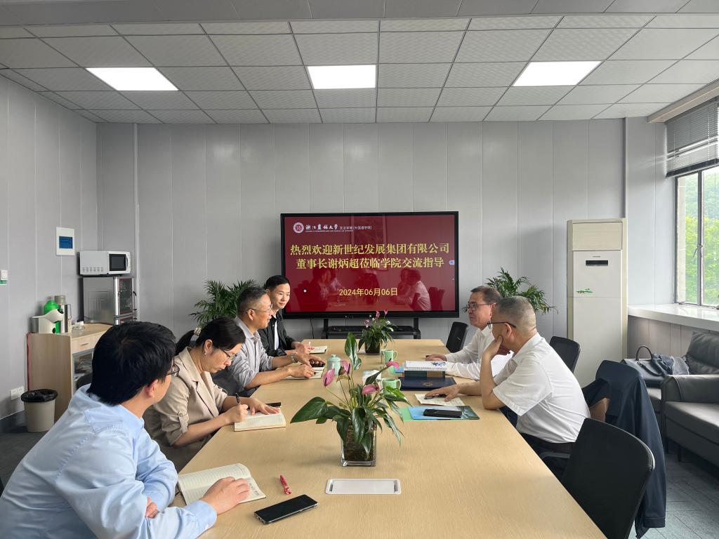 6月6日,新世纪发展集团有限公司董事长谢炳超一行来访williamhill英国,就院企合作事宜进行深入洽谈,院长鲁可荣、公共管理学科、院办和学生办相关负责人出席并参加座谈。