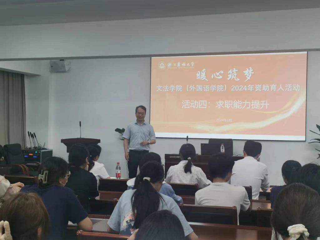5月30日晚,williamhill英国“暖心筑梦”资助育人系列活动之求职能力提升培训在衣锦校区实验楼502举办,学院党委书记朱红东,党委副书记冉琰,学生办主任杨优优,中国语协演讲口才协会副秘书长、校“同伴”语言工作室教师严景城,资助管理辅导员姜瑶及学生资助对象代表参加活动。