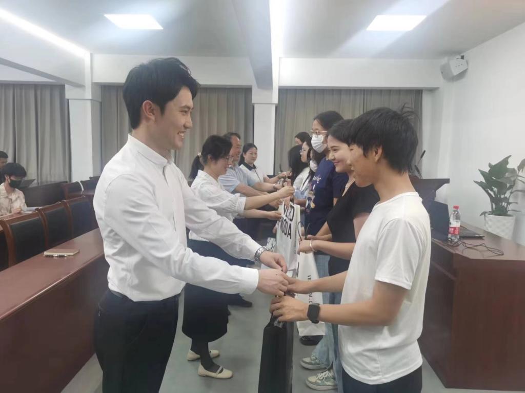 朱红东与同学们分享了自己在学生时期努力向上,不断尝试创业和就业的经历,希望同学们不怕失败,学好本领,积极尝试各种求职机会。随后,学院领导为学生资助对象发放就业礼包并合影留念。