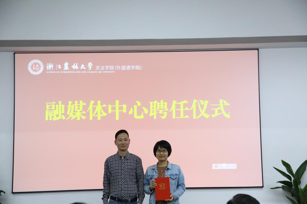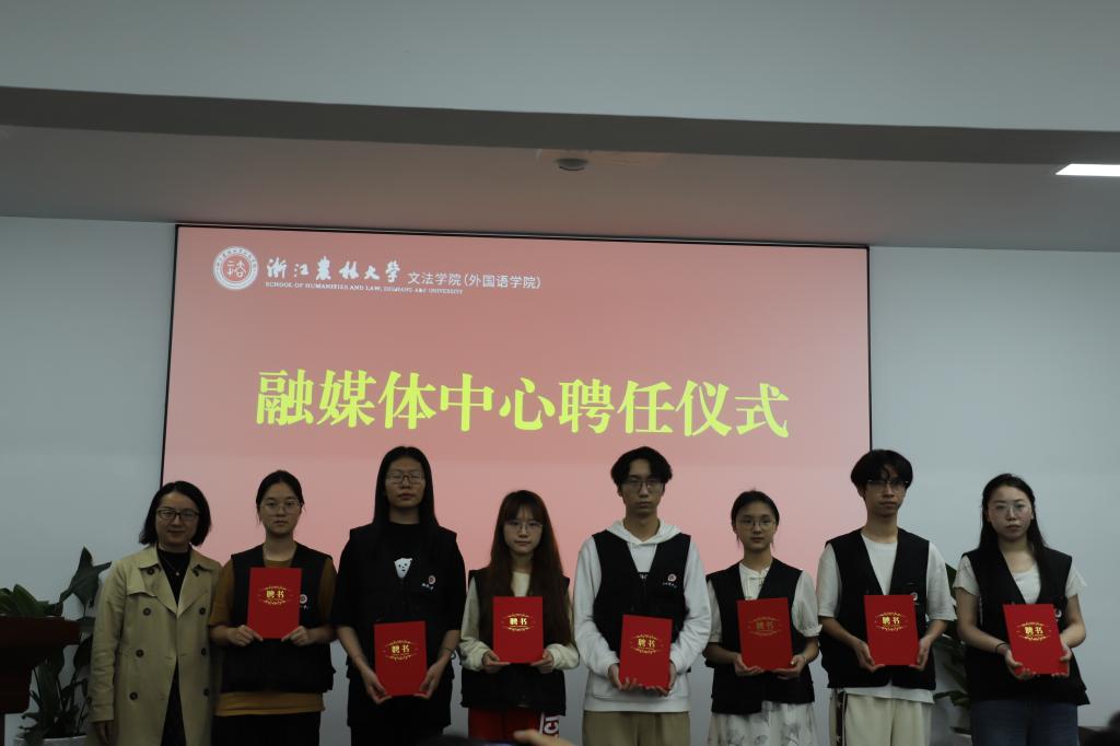 朱红东等学院领导,还向融媒体中心指导教师、通讯员、学生记者及法律顾问颁发了聘书。