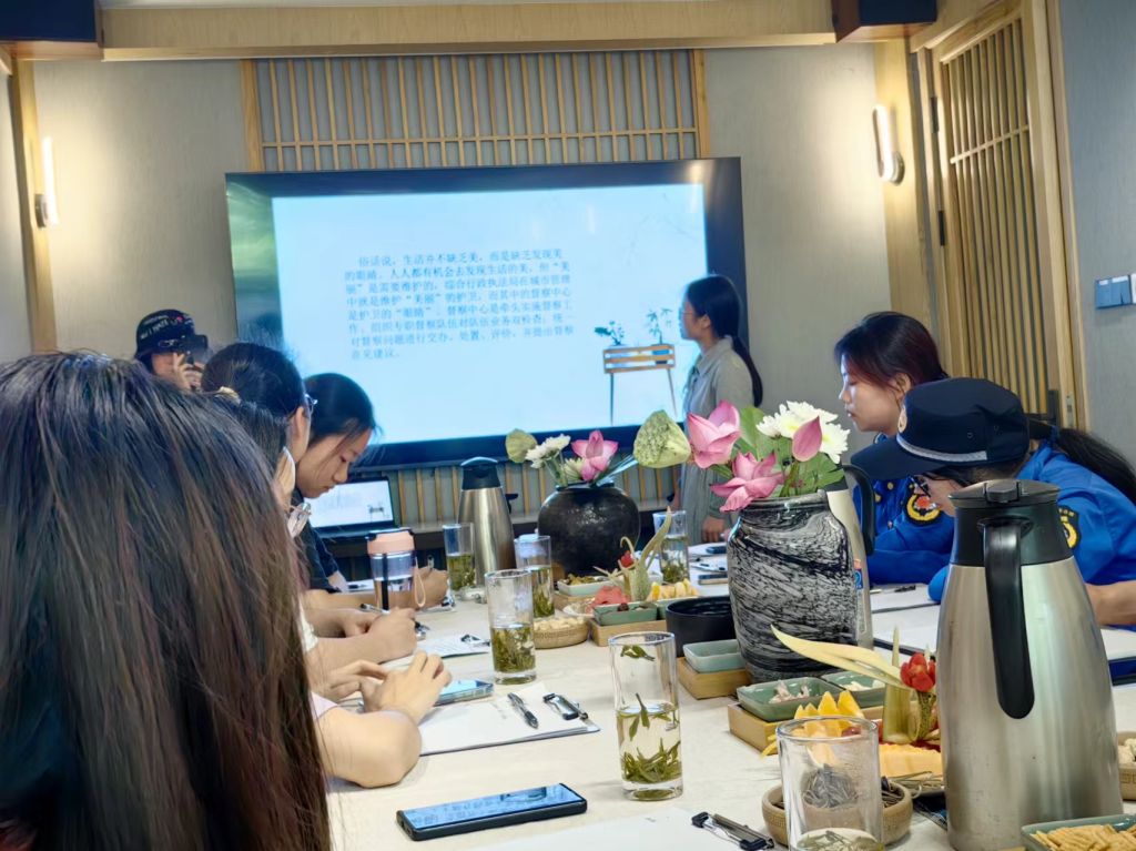 西溪湿实习点、三墩实习点、蒋村实习点、综合督查中心实习点的同学分别汇报了实习经历与心得体会。听取汇报后,指导教师高度评价了实习同学综合表现,并鼓励大家继续提升理论与实践相结合的能力,在实践中发现问题、思考问题、解决问题。