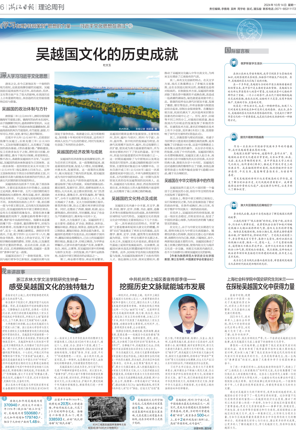 10月14日,我院2023级法律硕士研究生钟睿撰写的文章《感受吴越国文化的独特魅力》在《浙江日报》理论版发表。