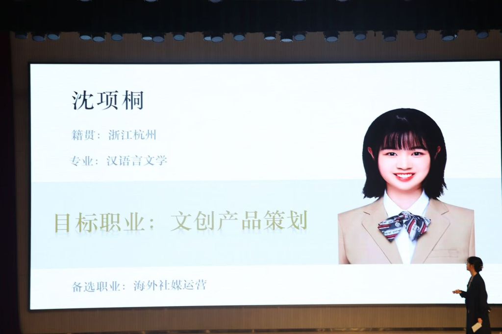 经前期选拔,来自不同年级的八名同学进入决赛。成长赛道上,汉语言文学22级黄伟杰怀揣着成为一名国际中文传播教师的梦想,致力于汉语的推广与中华文化的传播;法学24级张伊诺对警察职业有强烈兴趣,希望能够帮助他人、对社会作出贡献;城市管理24级穆博涵以西湖女子巡逻队的高级管理员为目标职业,乐于服务社会,推动西湖旅游产业发展;汉语言22级沈项桐希望向文创产品策划方向发展,想通过自己的努力,在故宫文创等领域实现职业梦想,为文化传播贡献力量。