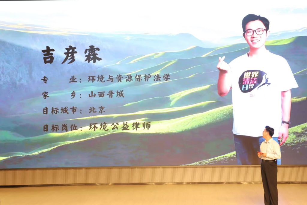 就业赛道上,环境与资源保护法学研23级吉彦霖怀着对环境公益律师职业的热忱,努力推动美丽中国的目标实现;法律非法学研24级赵建新梦想走进商事律师领域,他分享了自己从能源动力工程专业转行至商事律师领域的经历和规划,并希望深入学习相关法律知识、积累实践经验,保持终身学习的态度;汉语言22级卢翊桦想要成为乡村文旅运营者,以孙晓丽的成功案例作为学习榜样,计划进一步通过实习和参与培养计划来提升自己,以实现自己的职业目标;汉语言22级孙凯丽立志成为公益组织儿童项目的筑梦人,希望通过成为优秀的社工,为儿童提供更全面的支持与关爱。