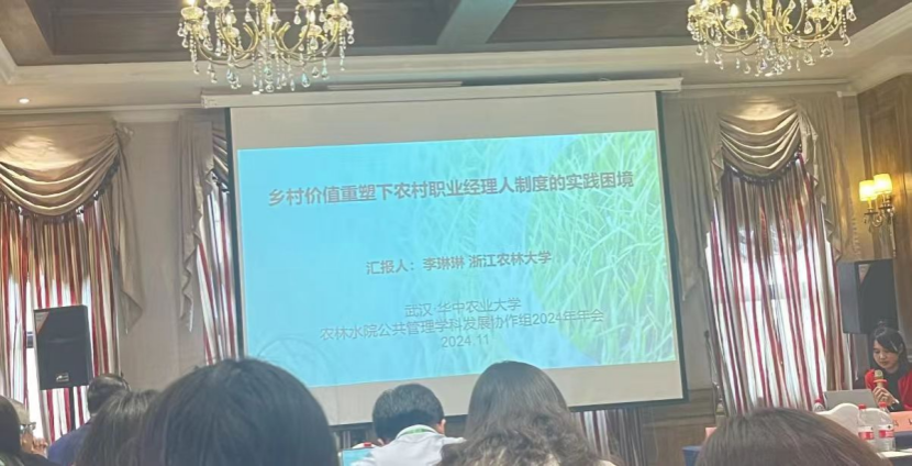 李琳琳参加会议,并在“城乡融合与乡村治理”分论坛作《乡村价值重塑下农村职业经理人制度的实践困境》的报告,阐释了在乡村多元价值重塑背景下,从国家、社会、市场框架下分析了农村职业经理人政策实践的制度困境、文化困境和资源困境。