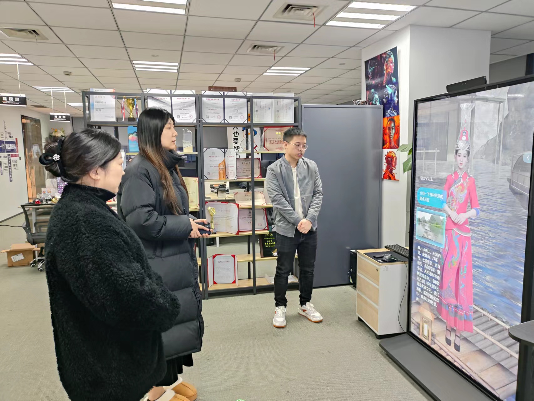 时空节拍(杭州)科技有限公司CEO厉军介绍了公司最新的发展进展与人才需求情况等。通过现场走访、产品体验、面对面交流,学院对校友企业的快速发展深感自豪。企业方也希望为母校发展提供更多帮助,双方深入交流了公司业务与学院发展的融合点,探讨了数字人交互系统在全国学雷锋活动示范点服务窗口等平台上传播和弘扬雷锋精神方面可以发挥更多作用,为下一步学雷锋场馆智能化提升打下基础。交流过程中,2016届校友厉军总经理也提出了在人才招聘方面的需求,也鼓励同学们积极参加实习实践,欢迎学弟学妹到公司实习,与公司共同成长。