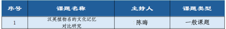 其中我院陈晦老师课题“汉英植物名的记忆对比研究”入选。