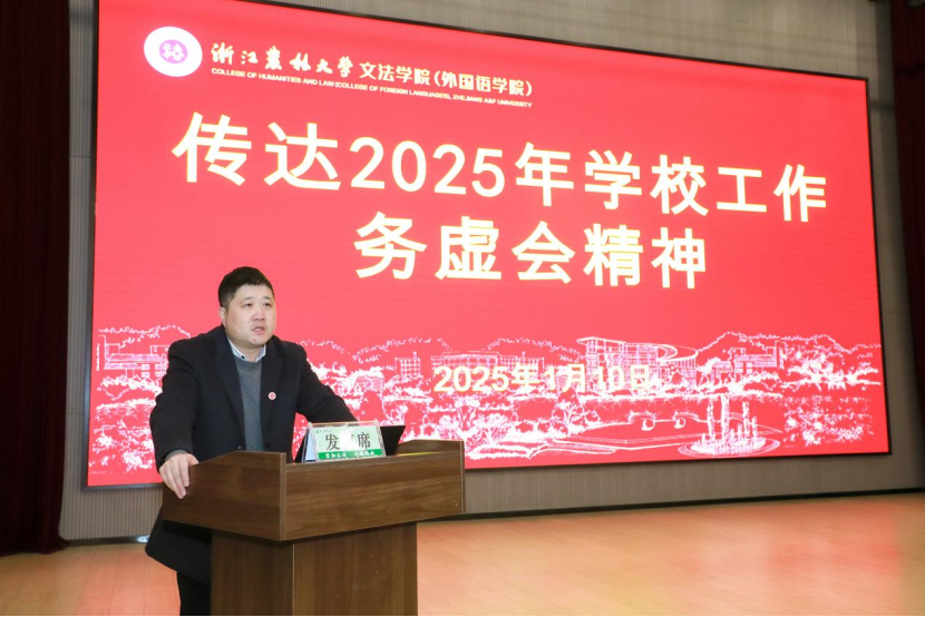 鲁可荣代表班子作2024年工作总结,他肯定了各学科部门、全体教职工在2024年的辛勤付出,总结了年度目标任务完成情况以及在师资建设、人才培养、科学研究、威廉希尔、党建思政等方面所取得的优异成绩,并期望全院上下聚焦下阶段重点工作,踔厉奋发,不断实现管理服务、人才培养和办学效益的持续提升。鲁可荣还作了个人述职述德述廉述法报告。