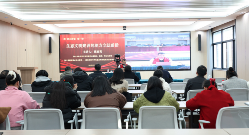 2025年1月13日,williamhill英国陈真亮教授应邀为杭州市法院系统做题为《生态文明建设的地方法治前沿》的专题讲座。陈真亮教授的讲座从新中国至今的生态文明法治建设历史回顾和发展趋势、杭州市生态文明建设的代表性地方法治成就、《杭州市生态文明之都建设条例(草案)》立法情况、美丽杭州和生态文明之都建设的司法保障体系等内容展开。
