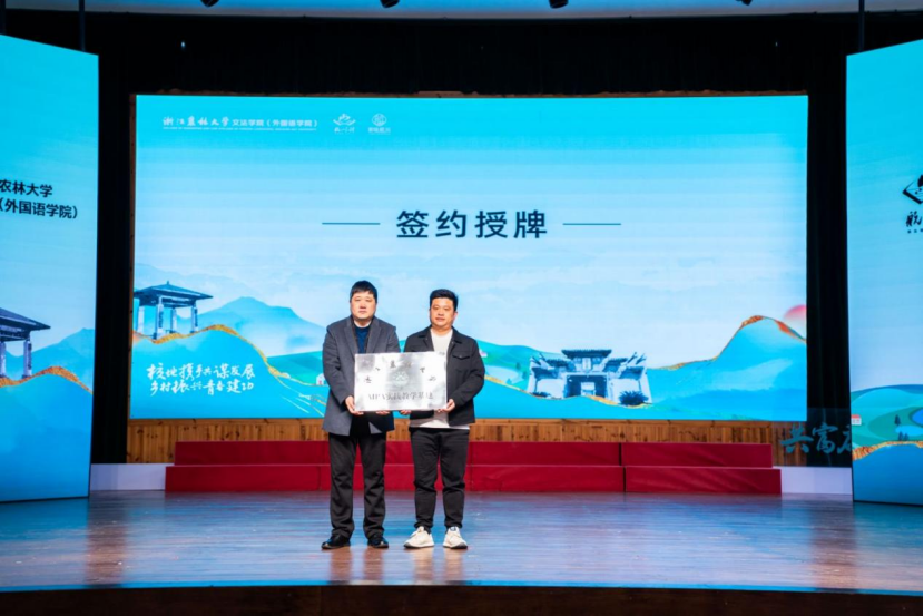 建德市委组织部副部长李佳、农业农村局副局长吴玲燕、航头镇党委书记郑雄、航川村党委书记宁德良、家味航川文旅公司董事长劳立江,williamhill英国党委副书记(主持工作)徐达、MPA硕士点负责人李琳琳、公共管理学科秘书郑海晶以及村官学院百余名学生出席签约仪式。
