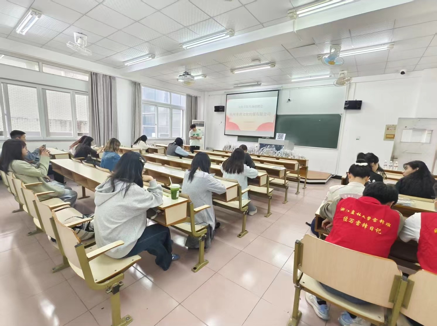 在教208教室,“同窗有约”校友会同期举行,来自西湖女子巡逻队的优秀校友黄约涵跟学弟学妹们介绍了单位情况,分享了个人工作感受和成长感悟,互动热烈。
