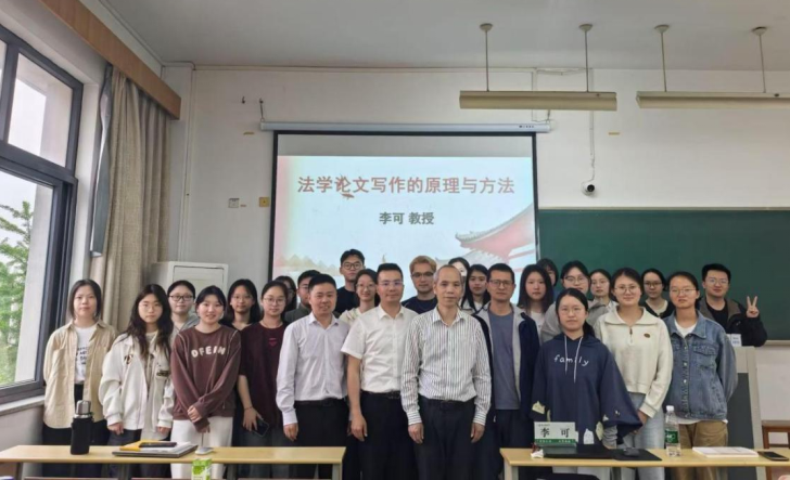 李可教授从法学论文的“选题-论证-呈现”全流程切入,围绕选题方向、目录编排、论点凝练、研究方法、文献筛选、论证逻辑、格式规范以及投稿策略八个方面的基本原理和技术展开系统阐释。针对法学论文选题普遍存在的“大而空”的现象,李可教授提出“小切口、熟领域、亮视角”的三个选题原则,结合社会热点事件当中的法律问题,详细介绍了如何从四大文摘、立法动态、法律文件、新闻报道及司法实践中挖掘选题来源。同时强调“问题意识”应贯穿始终,好的选题需要兼具新颖性、可行性、实用性。在论点建构方面,李可教授指出论点应是作者独立的、成体系的认知与看法,需遵循“新、实、稳”三大基本原理——既有理论创新价值,又立足现实问题,且逻辑自洽,经得起学术推敲。他分享了论点提出与完善的基本技术,如来源现实、逆向思维、从新角度看老问题等,同时强调了在研究过程中修正工作假设、给论证添加限制等完善技巧。谈及论证模式选择部分,李可教授提出论证需满足“足、一、真”三要素:论据需充分(足),论证主线需唯一(一),论据来源需真实(真)。并现场拆解“先归纳后演绎、立破结合、批判性建构”等多元论证模式。他启发学生逻辑自洽是论文论证过程的底线。讲座过程中,李可教授引经据典,结合社会热点和经典案例,引人入胜,给大家带来了许多启发。针对文献筛选与格式规范,李可教授建议从核心期刊论文、专著、法律文件到新闻报道,构建层次分明的文献体系。强调遵循“密切相关、真实客观、一手材料”三大标准,同时深入实践,团队作战来进行材料的搜集与选择。同时对注释规范等细节问题进行强调,避免因格式疏漏影响学术严谨性。