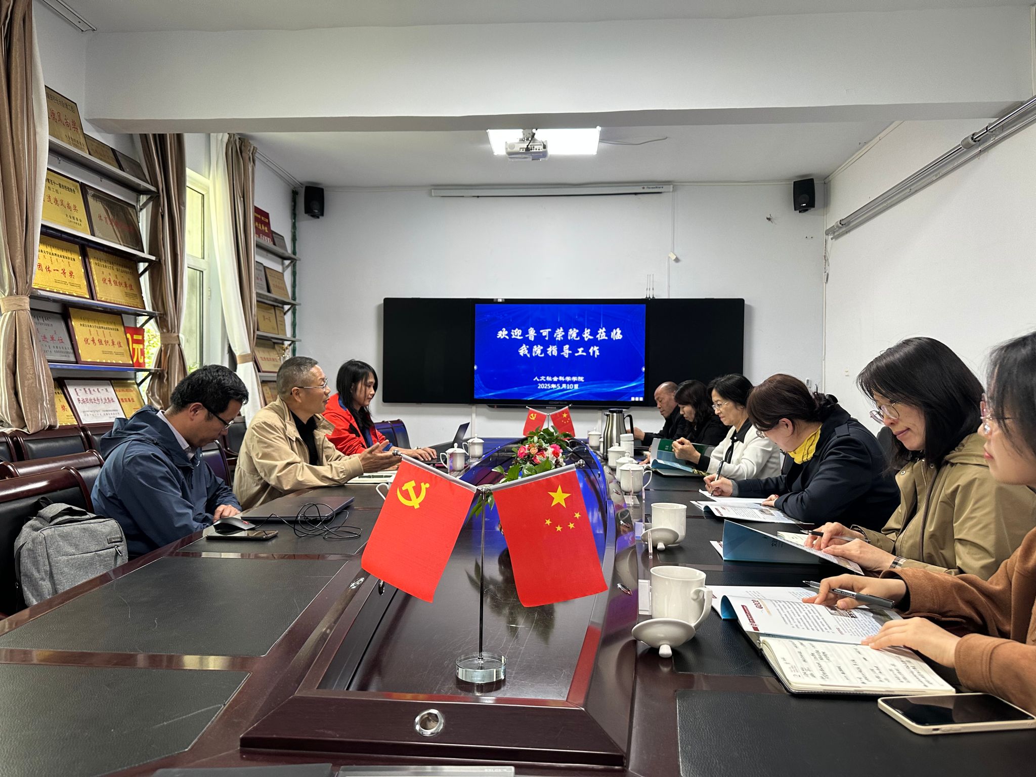 5月10日下午,鲁可荣与李琳琳到内蒙古农业大学人文社会科学学院调研。内蒙古农业大学发展规划处处长路冠军,人文社会科学学院院长张银花、副院长于翠英、副院长王利清,MPA教育中心主任张建新等以及研究生院有关教师参与调研交流。