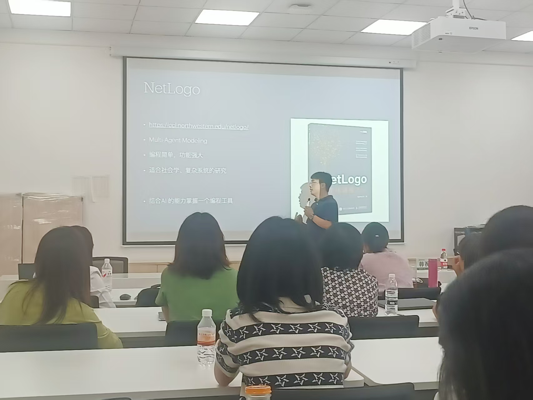 为了让教师们更直观地感受AI技术的教学潜力,工作坊还通过NetLogo平台演示了AI工具在教学中的实际应用。