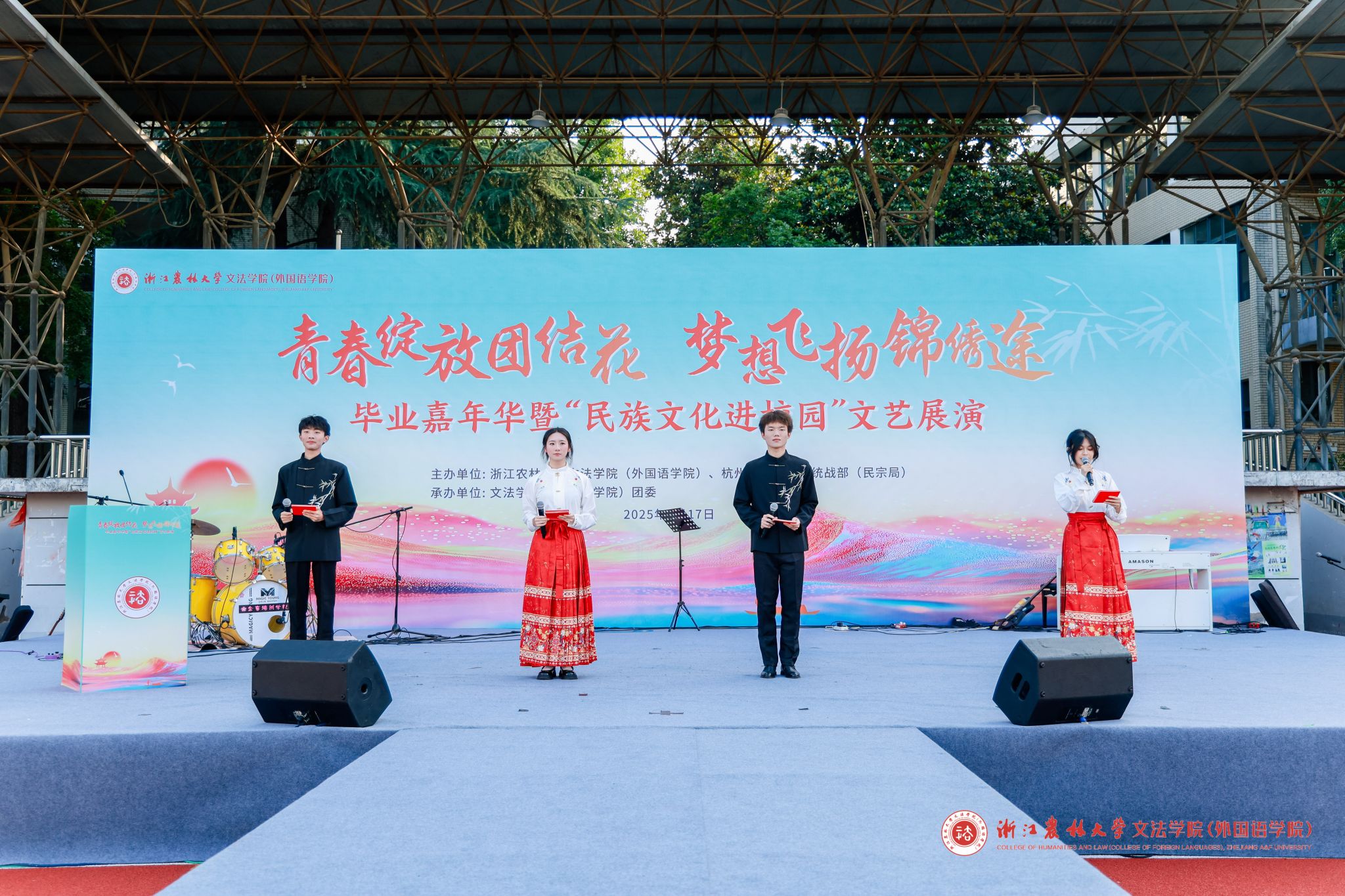 此次毕业嘉年华,不仅是2025届毕业生们学生时代记忆的璀璨定格,更是民族团结精神的生动诠释。当青春的热情邂逅民族文化的瑰宝,这场充满温度与厚度的文化展演,不仅为毕业生们的校园生活画上圆满句点,更在他们心中种下了传承民族精神、守护文化根脉的种子。愿文法学子们带着这份文化自信与团结力量,奔赴新途,以母校赋予的底气,在不同领域书写精彩,共同奔赴中华民族伟大复兴的锦绣前程,让青春在更广阔的天地持续闪耀!