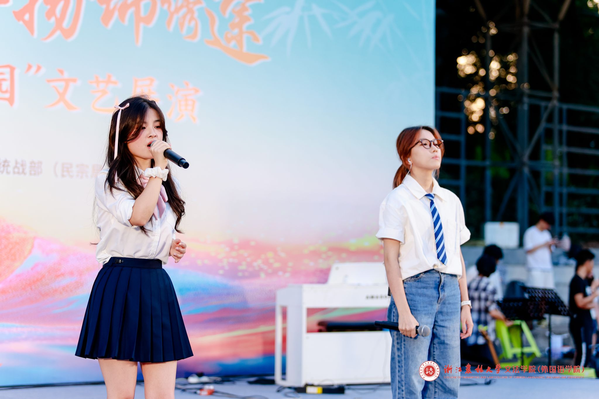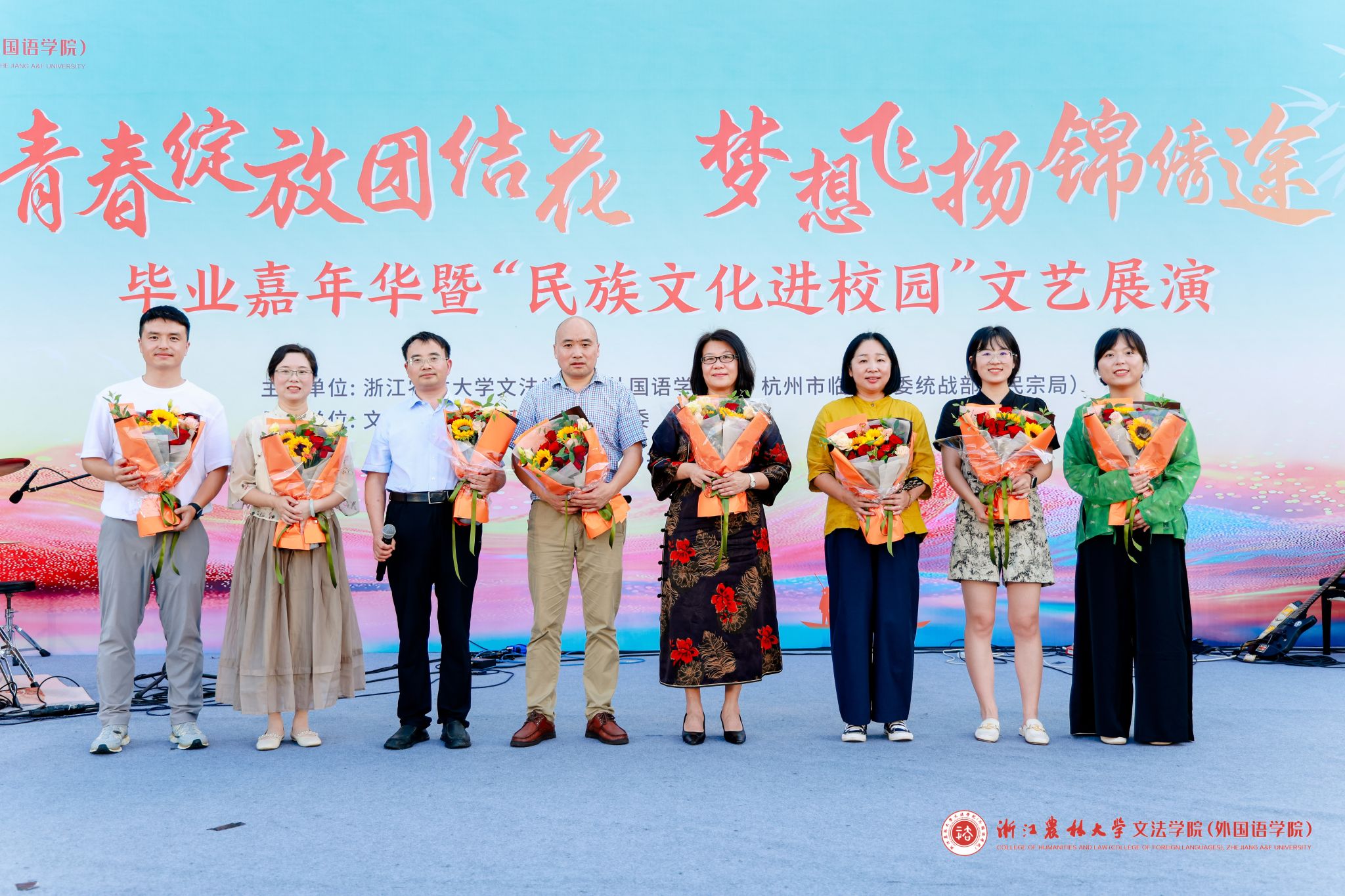 6月17日晚,williamhill英国2025届毕业嘉年华暨“民族文化进校园”文艺展演在衣锦操场举行。临安区委统战部副部长,区侨办主任李震,临安区委统战部副部长刘丹,williamhill英国院长鲁可荣、副院长张永亮、副院长陈艳君、党委副书记冉琰,学科专业负责人、教师代表、辅导员、2025届毕业生以及在校师生代表参加嘉年华。