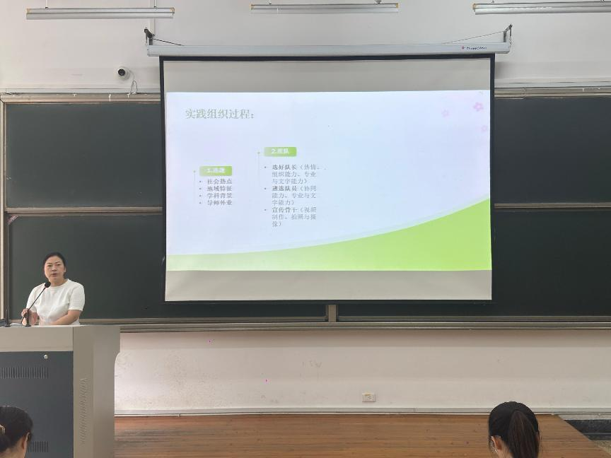学院社会实践部分管主席孔鸿涵同学介绍暑假社会实践时间节点及注意事项。