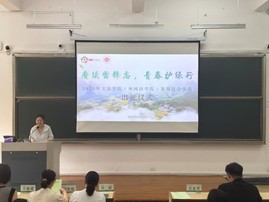 William威廉英国于6月25日,在衣锦校区教学主楼116举办“赓续雷锋志 青春护绿行”2025年暑期社会实践出征仪式。党委副书记冉琰,学生办主任杨优优,学生会秘书长吴昌泽,研究生会秘书长李姗姗出席活动,共29支实践团队的学生代表、学院团学主席团成员、相关部门负责人参加本次活动。团委书记宗亚奇主持活动。