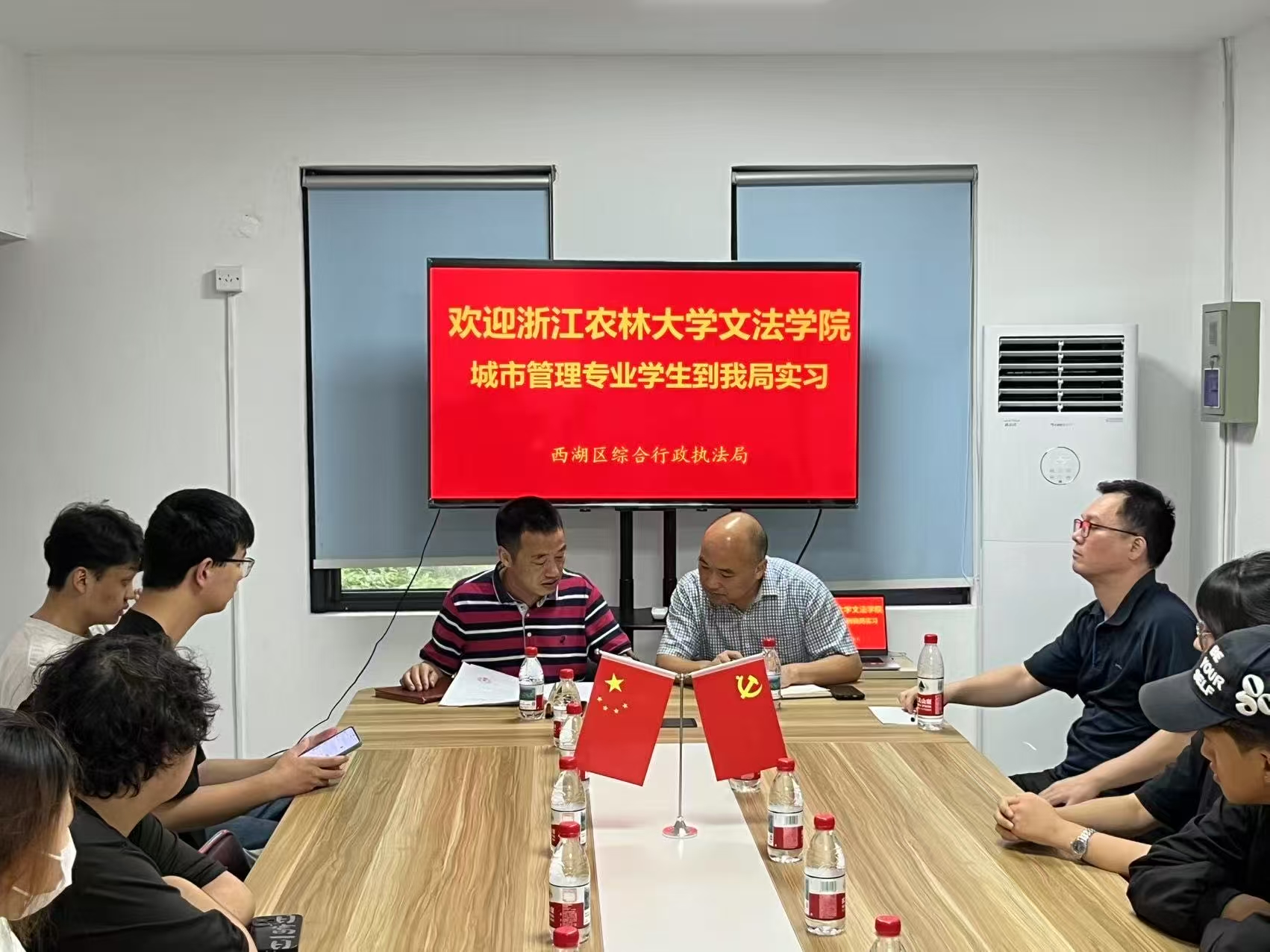 2025年6月24日,在鲁先锋老师和胡榕老师的带领下,西湖区综合行政执法局暑期实习活动正式拉开帷幕。在实习交流会上,西湖区综合行政执法局综合督察中心颜治主任对参加实习的学生表示热烈欢迎,并就实习相关事宜进行了详细介绍。