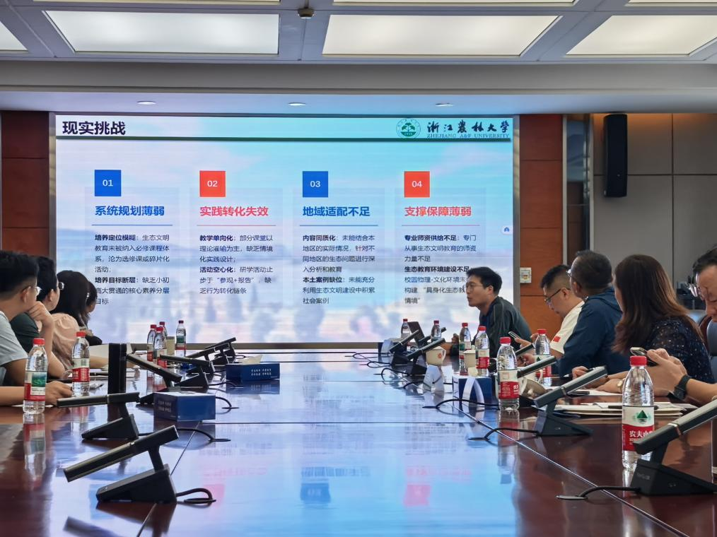 在成果汇报环节,williamhill英国团队成员以《“两山”理念融入大中小学生态文明教育的探索与实践——以William威廉英国为例》为题作专题报告。此次汇报详细介绍了William威廉英国依托农林学科特色和生态办学优势,在推动“两山”理念融入思政课程、课程思政、社会实践及校园文化建设方面的系统设计与创新实践。重点分享了学校如何构建贯穿不同学段的生态文明教育内容体系,以及利用校内外资源开展沉浸式、体验式教育的成功案例,为“两山”理念深度融入思政教育一体化提供了具有农林特色和示范价值的“浙农林方案”,引发了与会者的广泛关注和积极讨论。