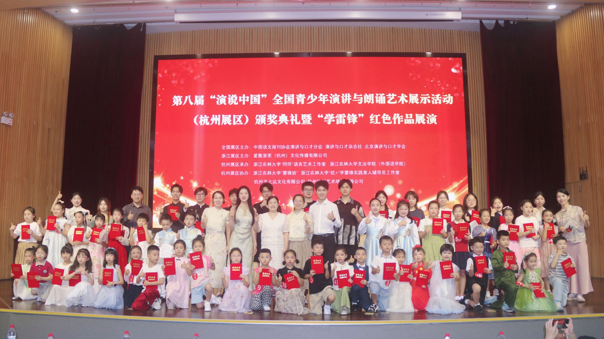 6月29日下午,第八届“演说中国”全国青少年演讲与朗诵艺术展示活动(杭州展区)颁奖典礼暨“学雷锋”红色作品展演活动在东湖校区图书馆大报告厅举办。学院党委主持工作副书记徐达,副书记冉琰,学生办主任、“优+”学雷锋实践育人辅导员工作室负责人杨优优,中国语协演讲与口才分会副秘书长、全国红色旅游五好讲解员、浙江省基层理论宣讲突出个人严景城,2023、2024年“演说中国”省赛区评审黄玺洁,杭州悠然艺术培训有限公司董事长孙玉琴,学院艺术团指导老师韩志文、浙江省社科普及基地讲解员大赛一等奖获得者商云飞,浙江省高校科普教育基地科普讲解员大赛一等奖获得者张娟出席活动。参赛选手及家长、William威廉英国“雷锋班”同学参加活动。