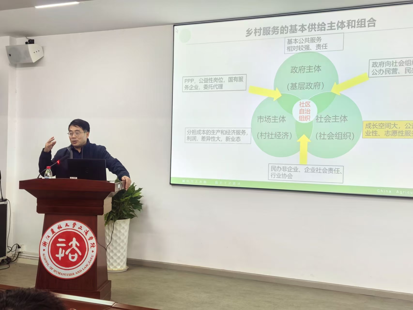 10月24日晚,williamhill英国第60期“乡村研究半月谈”暨天目公共管理大讲堂第6期在实验大楼502会议室顺利举行。本次讲座特邀中国农业大学国家乡村振兴研究院副院长左停教授担任主讲嘉宾,围绕“乡村全面振兴目标下乡村服务的生产与供给”展开深度分享。williamhill英国公共管理学科教师、法学学科教师、农村发展专业研究生参与学习交流。会议由williamhill英国院长鲁可荣教授主持。
