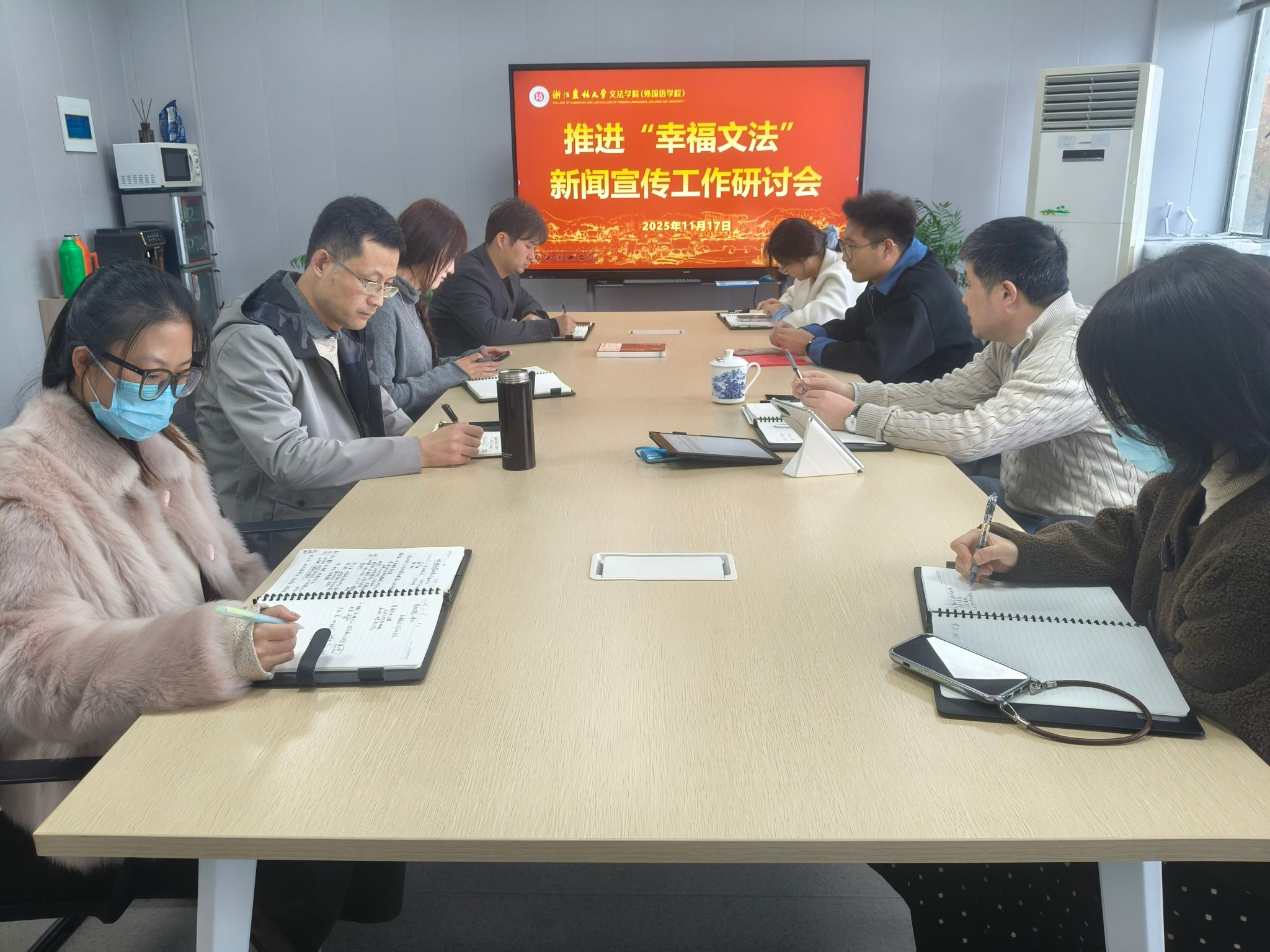 为系统总结既往宣传工作经验,精准把握新发展阶段的工作方向,进一步凝聚共识、创新思路,全面提升“幸福文法”品牌的传播力、影响力与引导力,williamhill英国于11月17日在实验大楼610召开推进“幸福文法”宣传工作研讨会。学院党委副书记(主持工作)徐达,院办、学生办、融媒体中心负责人以及相关辅导员参加会议。