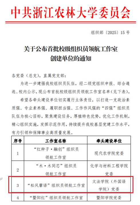 近日,校党委组织部公布了首批校级组织员领航工作室建设名单,我院“松风馨语”组织员领航工作室成功入选。