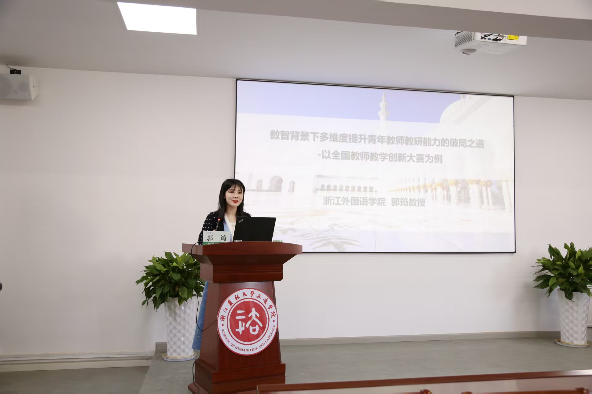 为进一步激发青年教师成长活力,11月20日下午,学院特邀浙江外国语学院郭筠教授作题为“数智背景下多维度提升青年教师教研能力的的破局之道”的专题讲座。讲座由副院长陈艳君主持,学院青年教师参加了本次讲座。