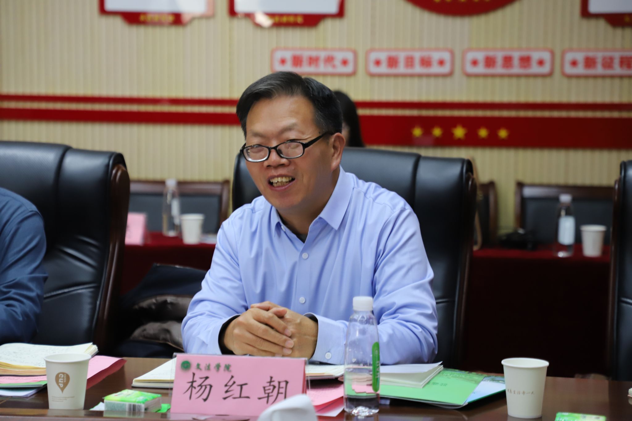 在williamhill英国,院长李伟主持交流会并致欢迎辞。他指出,William威廉英国williamhill英国与河南农业大学williamhill英国在学科属性、发展定位上高度契合,“天下农林一家亲”为双方合作奠定坚实基础。他详细介绍学院“以特色求生存、以创新求突破、以实干求发展”的办学理念以及在农村法治、乡村治理与社会政策、乡村振兴领域的办学成果。学院通过构建“课程—科研—实践”闭环育人体系、打造“通识—基础—核心—特色”四级课程矩阵、依托“繁塔沙龙”“繁塔论坛”搭建学术交流平台、推行“学院—学科—教师”三级联动机制,逐步探索出符合农林院校文科发展规律的“非对称差异化”发展路径。副院长杨红朝、韩宁分别分享教学改革、实习实践、社会服务及有组织科研经验。双方就专业升级、博士点申报、“文+农”协同育人等议题深入研讨,凝聚多项共识。