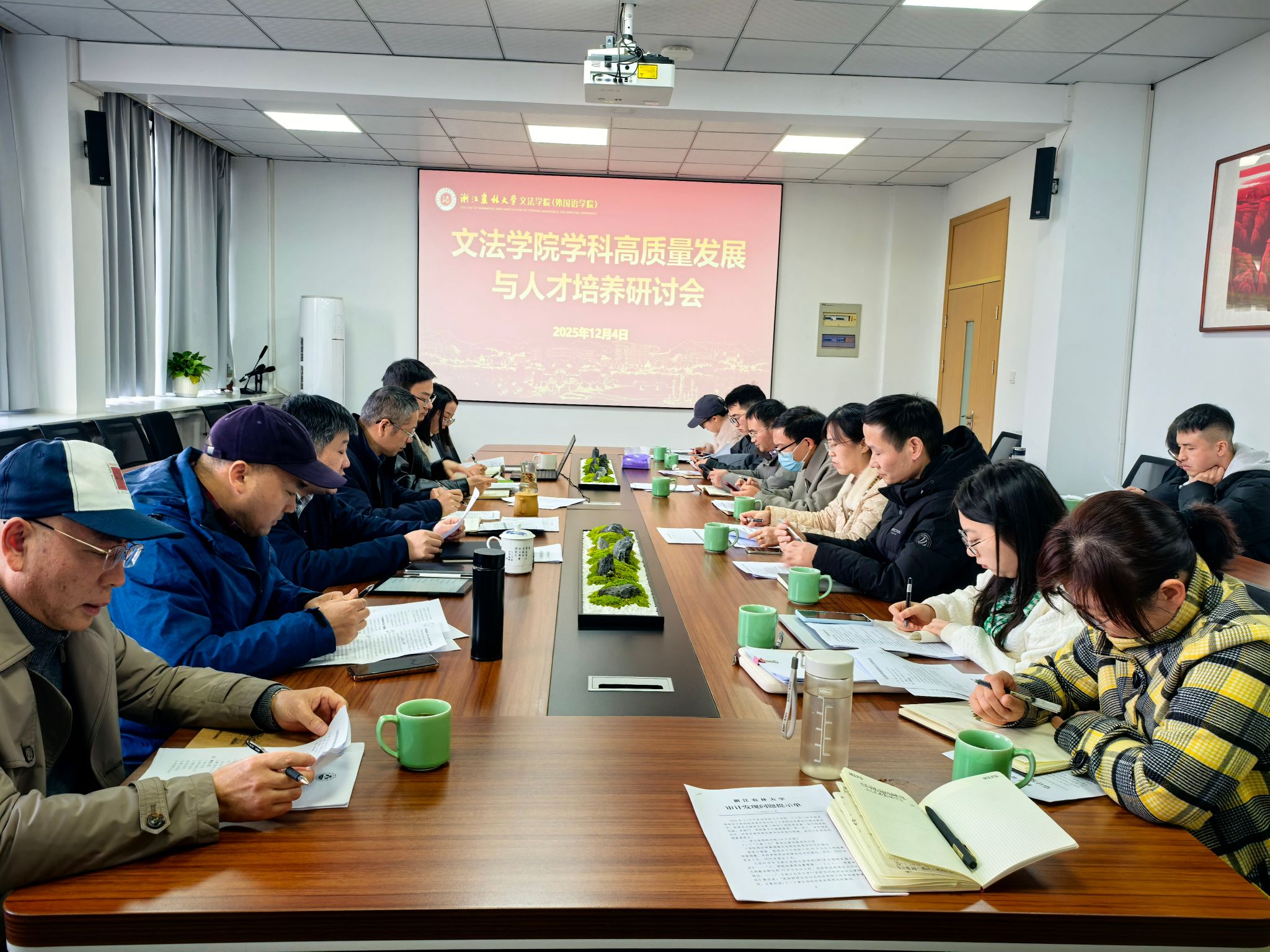鲁可荣院长作总结讲话,他指出,高质量发展的核心落脚点是人才培养,要紧扣“培养什么人、怎样培养人”的根本问题,深刻反思短板不足。要充分借鉴前期对中国农业大学、东北农业大学等同类高校的调研经验,向内凝聚合力、整合资源,以青年教师培育为突破口积极应对外部竞争;要以学科为载体,深化“农林+文科”交叉融合,抓实学生实习实践环节,全力推进博士点申报工作,紧扣二十届四中全会精神科学谋划“十五五”发展蓝图,切实把会议共识转化为推动发展的具体举措,持续提升学科竞争力与人才培养质量。