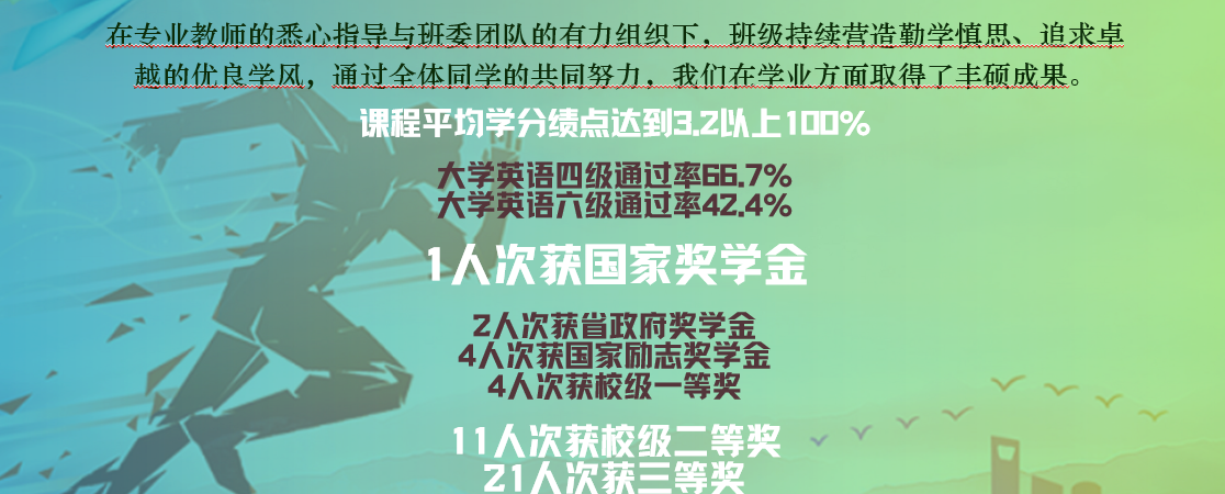 学业成绩方面,班级创造了“平均学分绩点3.2以上同学占比100%”的优异成绩,英语六级通过率超过42%,各类奖学金覆盖率近60%,这些数字见证了同学们扎实的学习足迹。