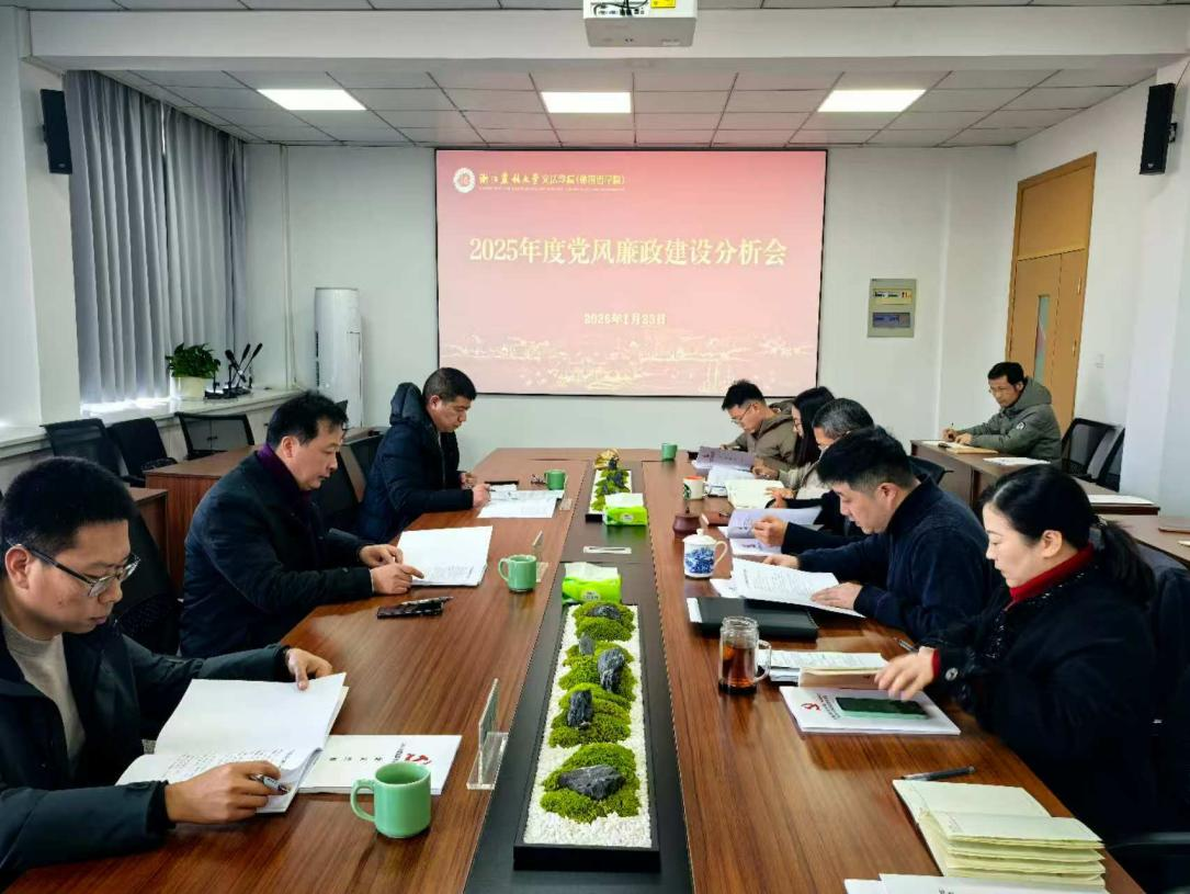 徐达总结汇报了学院2025年度党风廉政建设做法成效,并以“2025年廉政风险排查及防控情况”为主题进行了专项剖析,最后从在加强学习教育、筑牢勤廉思想堤坝,弘扬勤廉文化、营造风清气正的勤廉氛围,突出工作重点、把握风险防控关键环节,压实主体责任、形成高效有力长效机制,落实监督责任、构建严格有效的监督体系等五个方面提出了整改措施与整改方向。学院班子成员围绕分管领域的党风廉政工作,从“一岗双责”角度逐一交流发言。