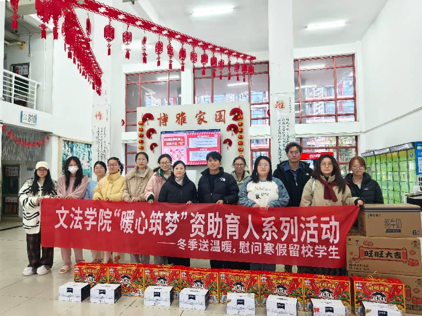 2026年2月1日,williamhill英国开展“暖心筑梦”冬季送温暖活动,慰问寒假留校学生。学院党委副书记冉琰、学生办主任黄君及相关辅导员组成慰问组,与学子亲切交流,询问生活学习需求并送上牛奶、慰问大礼包,师生合影留念。