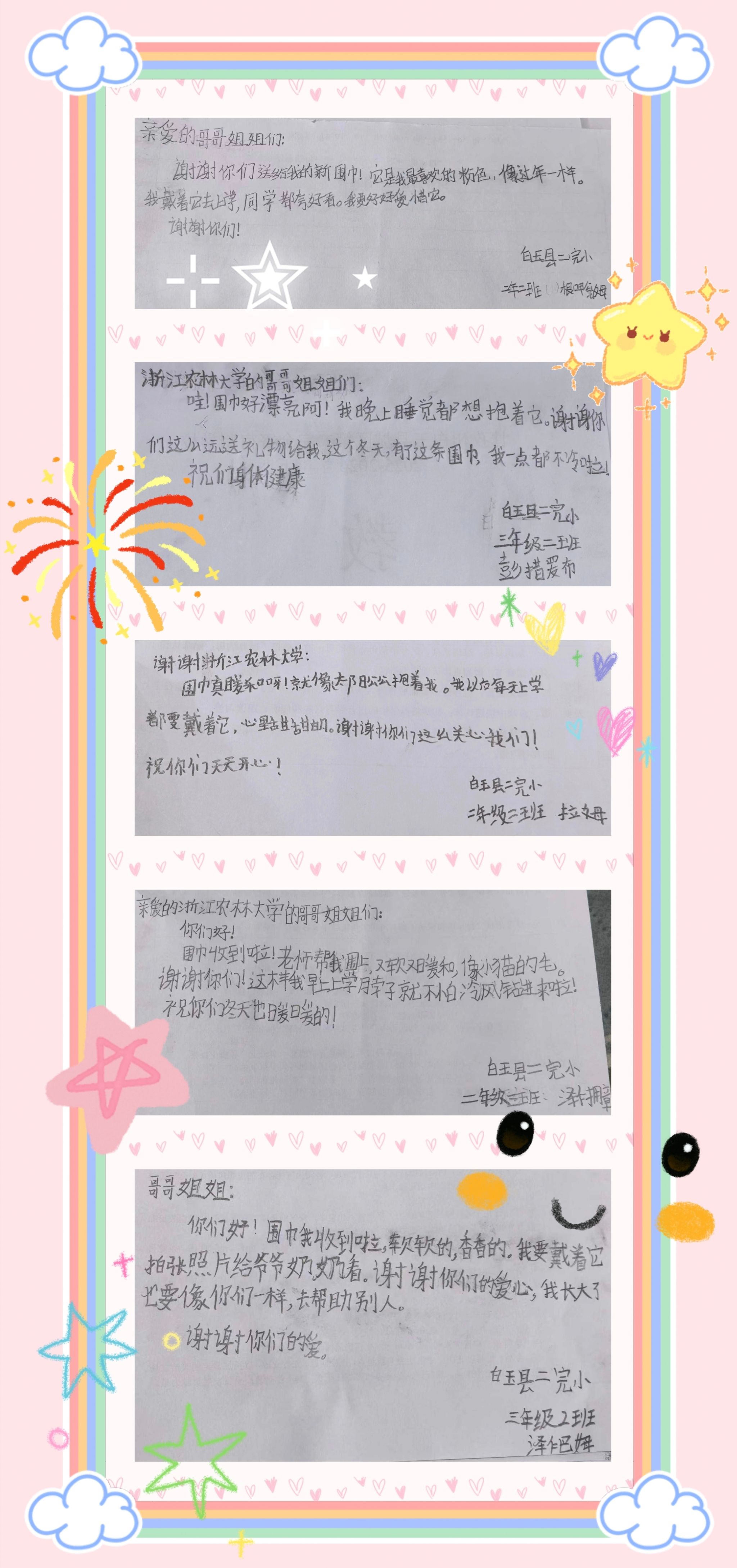 更让雷锋班同学们动容的,是孩子们一封封滚烫的回信。“谢谢你们的爱心,我长大了也要像你们一样,去帮助别人”“祝你们天天开心,我会把这份温暖一直记在心里”,简单的话语里,不仅有真诚的感谢,更有一颗向善向美的种子悄然生根。这场跨越千里的爱心传递,让雷锋精神不再是书本里的故事,而是触手可及的温暖、可以传承的力量。