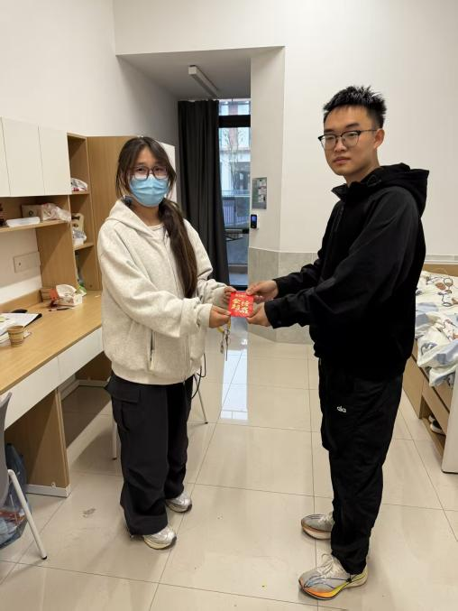 学院校友服务中心对突发临时困难的同学进行了摸排,积极联络校友企业浙江博越科技股份有限公司启动专项帮扶计划。在慰问活动中,学院校友服务中心主任陈蕲鑫与校友企业代表共同将“暖心慰问金”及“爱心礼包”送到了受助学生手中。校友企业代表详细询问了解了受助学生的学习生活状况,鼓励他们保持乐观心态,勇敢面对暂时的困难,将学校的关怀转化为勤奋学习的动力。这份来自学院党委与校友企业的帮助不仅缓解了经济压力,更让他们感受到了母校和校友的深厚情谊,未来定当努力成才,回馈社会。