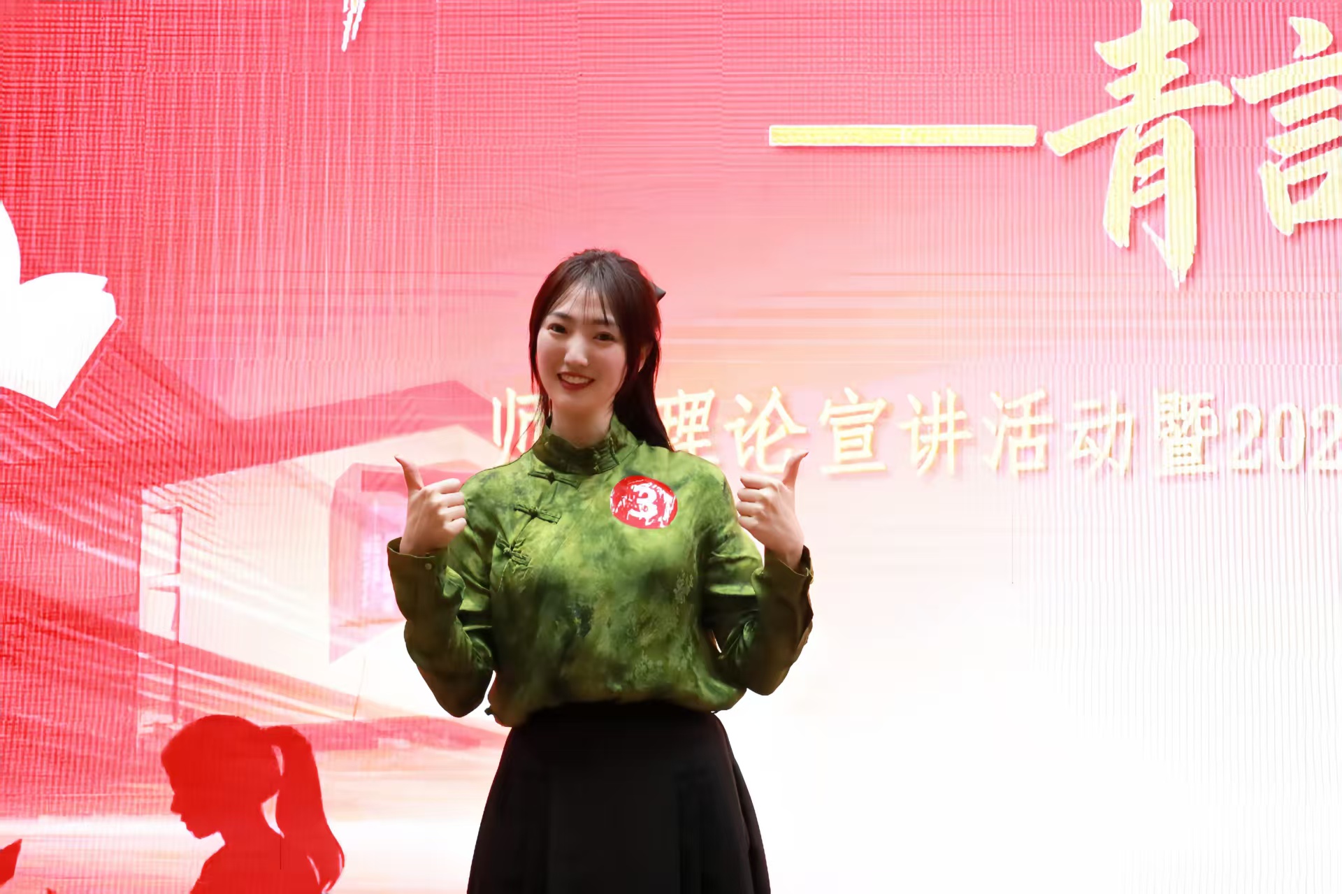 在学生组比赛中,张慧鋆以《千万工程,绿富同行》为题,结合自身担任第五届世界生物圈保护区大会志愿者的经历,从月亮桥村的百年柳杉讲起,生动诠释了“千万工程”如何让中国乡村实现从脏乱差到绿富美的蝶变。宣讲以“杉树扎根”“杉林成势”“杉影擎天”为脉络,层层递进:从一村二十年久久为功扎牢绿富共生之根,到千村因地制宜分类施策汇成乡村振兴之林,再到全球共享中国实践擎起生态治理之天。作品既有鲜活的基层故事,又有宏阔的国际视野,最终以“守生态之根、走发展之路、担世界之责”给出了“中国乡村如何一边守护好山水、一边让老百姓过上好日子”的动人答案,赢得现场评委好评。