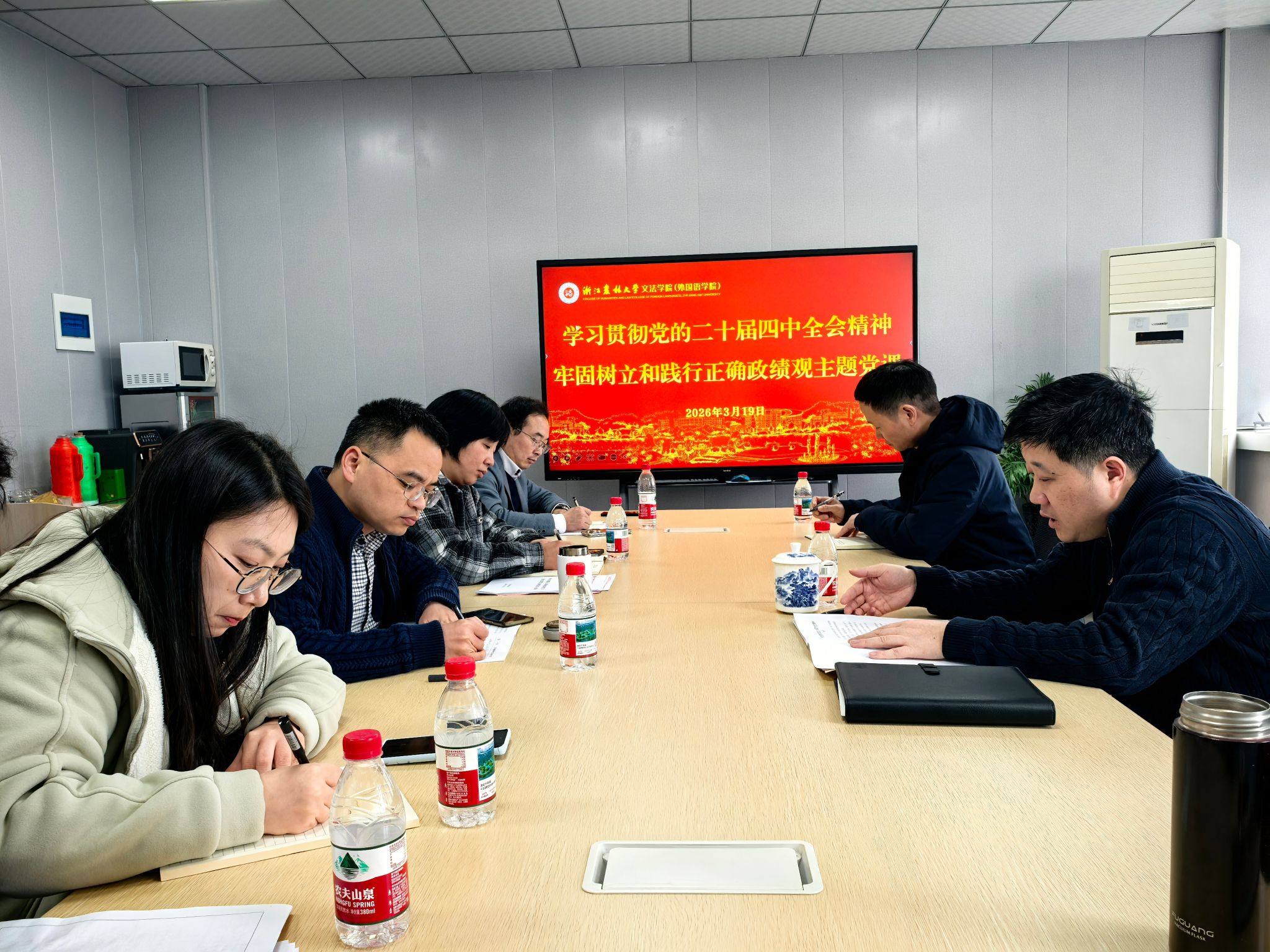 此次党课有理论高度和思想深度,紧密贴合院情实际,逻辑清晰、阐释透彻,为学院凝聚共识、推动工作提供了有力指引。教工党支部支委们一致表示,将立足岗位牢固树立和践行正确政绩观,把思想和行动统一到党的二十届四中全会精神及学院工作要求上来,为学院事业发展贡献更大力量。