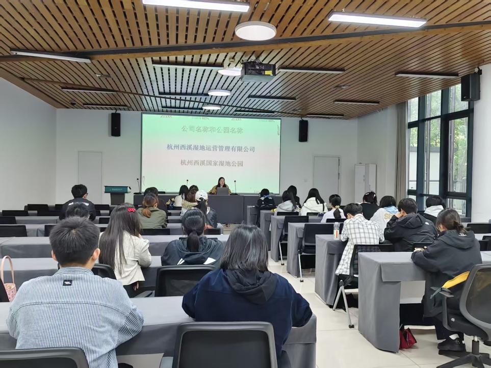 参观结束后,企业方详细介绍了公司的发展历程、业务板块及未来规划,重点阐述了在文旅策划、品牌营销、文化传播、生态保护等领域的人才需求。在随后的互动环节中,企业相关岗位负责人代表结合自身经历,详细解读了文化宣讲员、直播运营助理等核心岗位的任职要求,并就同学们关心的职业发展路径、薪资福利待遇进行了耐心解答。现场气氛热烈,学生们积极提问,纷纷表示通过此次活动,对杭州西溪湿地运营管理有限公司以及未来的职业方向有了更清晰的认识与规划。
