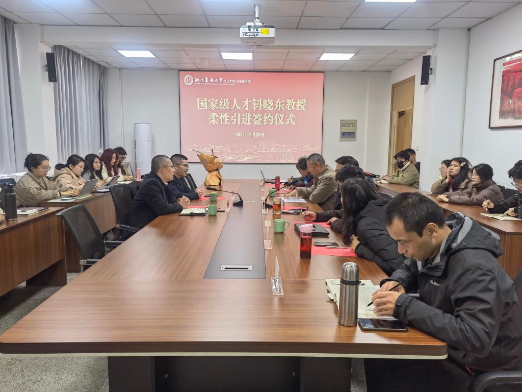 孙伟胜、鲁可荣分别代表学校、学院,与钭晓东教授签订了柔性引进协议书。
