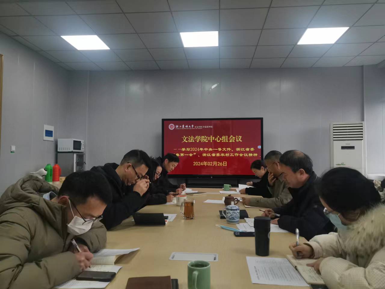 2月26日下午,williamhill英国在实验楼610会议室,召开中心组学习会,专题学习2024年中央一号文件精神,学习浙江省委“新春第一会”及农村工作会议精神。中心组成员参加学习,党委书记朱红东主持学习会。