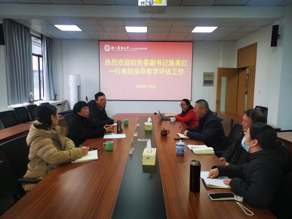 2024年1月8日下午,校党委副书记施美红一行到学院调研指导本科教育教学评估工作。学院党政领导班子成员参加座谈会。