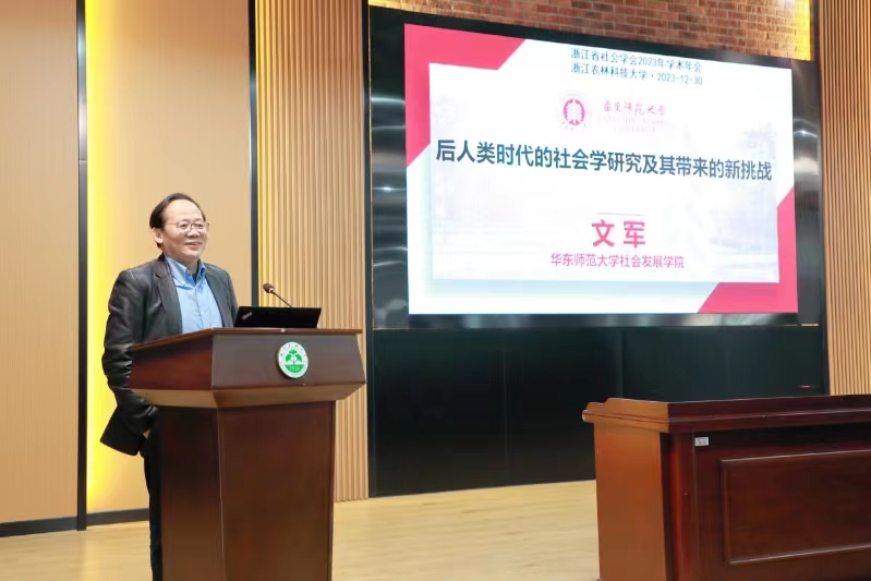 在上午主题报告环节,毛丹教授作了“持续缩小‘三大差距’在推进共同富裕中先行示范--社会学的思考”的主题报告,从“一道红线”、重大进展、后续努力方向以及相关政策选项方面对推进浙江省共同富裕中先行示范进行了深入分析和思考,并从社会学的研究视角提出了后续发展仍需加强的内容。成伯清教授作了“效率、公平与结构--社会学视野中的共同富裕”的主题报告,分别从“共同富裕既是理想,也是通往理想的途径”、“共同富裕的实现,需要相应的结构性条件”以及共同富裕与社会建设之间的关系三方面进行了全面、深入的论述。文军教授作了“后人类时代的社会学研究及其面临的新挑战”的主题报告,提出社会学不仅要研究“人类的未来”,还要研究“未来的人类”,而未来的人类不仅仅是生物的人组成,迫使研究者重新思考什么是人类。鲁可荣教授作了“以‘千万工程’推进共同富裕的浙江村庄实践及经验启示”的主题报告,围绕“千万工程”推进共同富裕的时代背景和重大意义、“千万工程”实施阶段及村庄实践、“千万工程”推进共同富裕的主要成效及经验启示、“千万工程”推进共同富裕的现实困境及未来展望等方面进行了全面、深入的分析和讨论。林晓珊教授作了“共同富裕、消费分层与扩大内需”的主题报告,从切实有效扩大内需、以消费分层观测共同富裕、我国消费分层的基本情况以及消费分层与扩大内需之间的关系四个方面进行了系统的论述。李一教授作为主题报告环节的主持人。