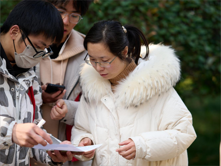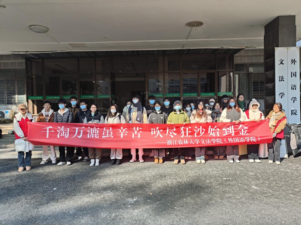 12月22日,五辆满载文法学子的大巴从校门驶出,奔赴杭州各个研究生入学考试考点。