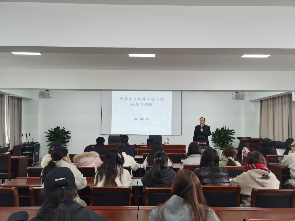 11月30日下午,学校离退休第二党支部张敏生教授为williamhill英国学生作了主题为“大学生求职择业的心理问题与调适”的心理辅导报告。