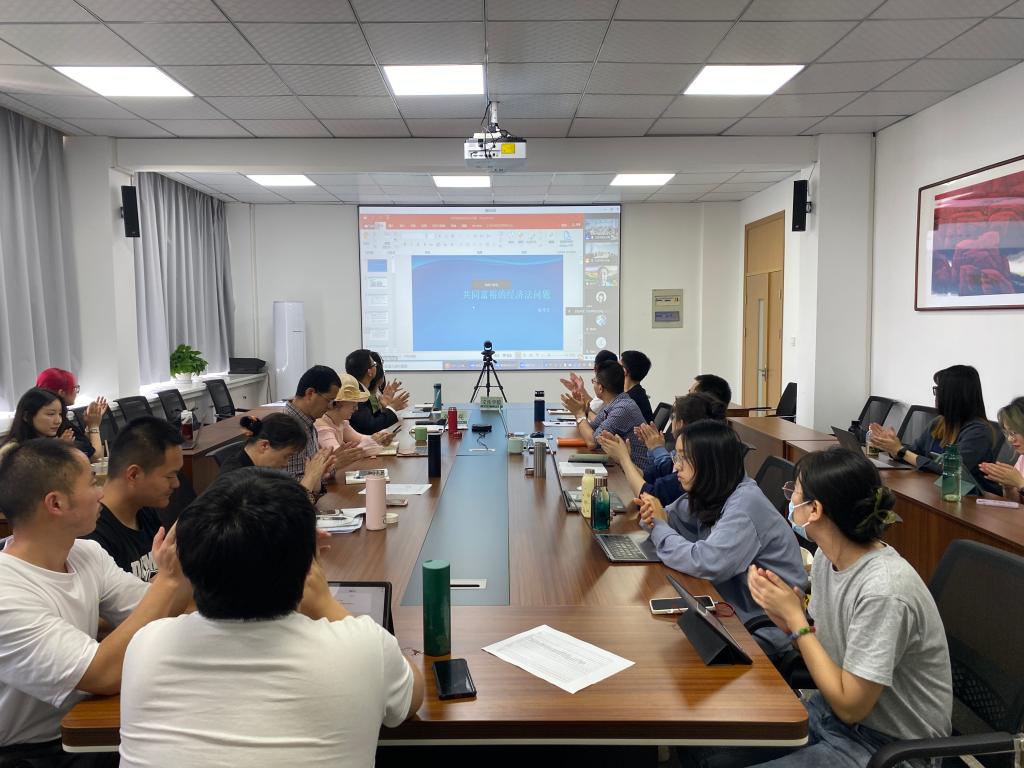 在自由交流环节,法学学科的李媛媛副教授、郑智副教授、莫张勤博士分别就共同富裕的法律问题与张守文教授进行互动交流,张守文教授针对老师们的提问详细地表达了自己的看法和见解。