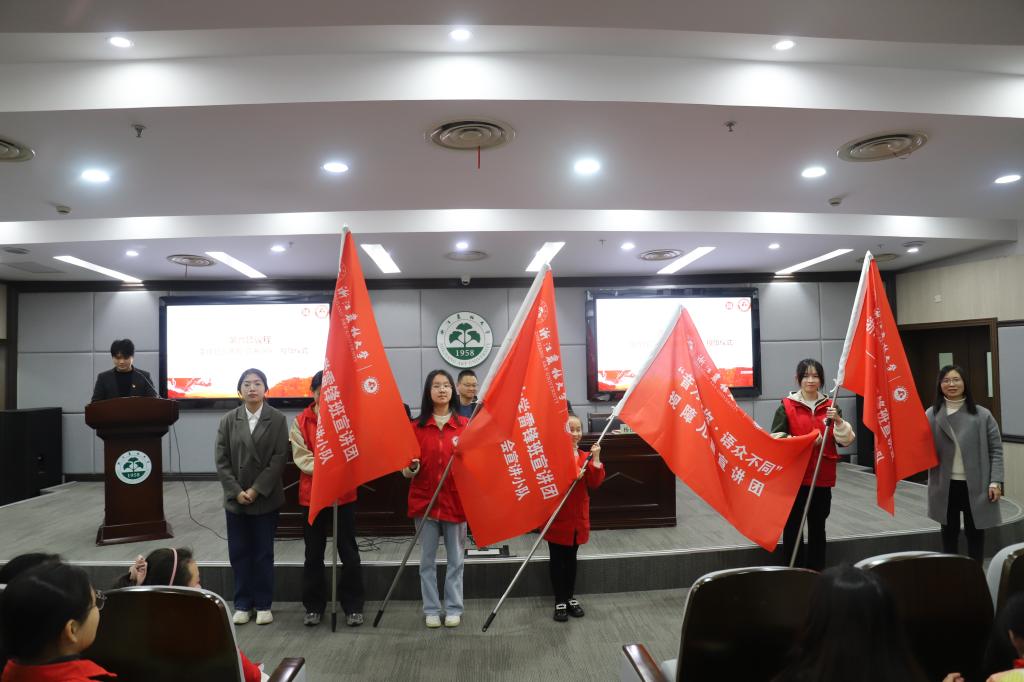 为更好的宣传党的二十大精神、践行新时代雷锋精神、为杭州亚运会的召开代言,雷锋班宣讲团特成立“党的二十大精神”宣讲小队、“新时代雷锋精神”宣讲小队、“喜迎杭州亚运会”宣讲小队三支主题宣讲小队,并特别要请到“音为有你,语众不同”视障儿童宣讲团加入到雷锋宣讲团中来,共同讲好时代故事。williamhill英国学生办主任杨优优、寸草心社会工作服务中心王薇为宣讲团授旗。
